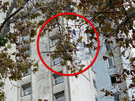 Сигнал до Флагман.бг: Силният вятър скъса билборд до х-л Космос (СНИМКИ)