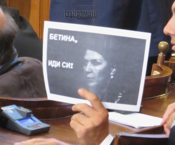 Депутатите от БСП с пърформанс в парламента: „Бетина, иди си!” (снимка) Депутатите от БСП с пърформанс в парламента: „Бетина, иди си!” (снимка)