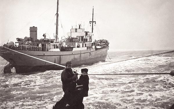 Към три часа след полунощ няколко ракети осветиха града, издигащи се от Северния залив. От близките до брега къщи забелязаха в Северния залив силуета на голям кораб. До сутринта на 18 януари 1963 г. – ЙОРДАНОВДЕН, корабът щурмуваше с работещ двигател и спуснати котви. Вятърът постепенно затихна и вълните намаляха. Всички, които го наблюдаваха, очакваха да вдигне котва и да поеме по своя път. От кораба бяха решили друго. Като отдаваше котвените вериги, коръбът бавно започна да се приближава до скалистия бряг, докато кърмата му стигна до скалите. От един тласък на вълните кормилната перка се удари в скалите и изскочи. Отново с ход и обрани вериги корабът застана в средата на залива.