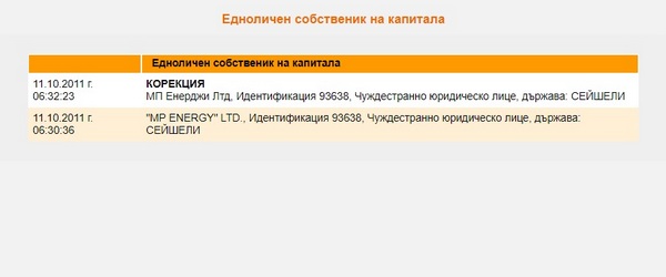 Едноличен собственик на капитала е офшорка на Сейшелските острови