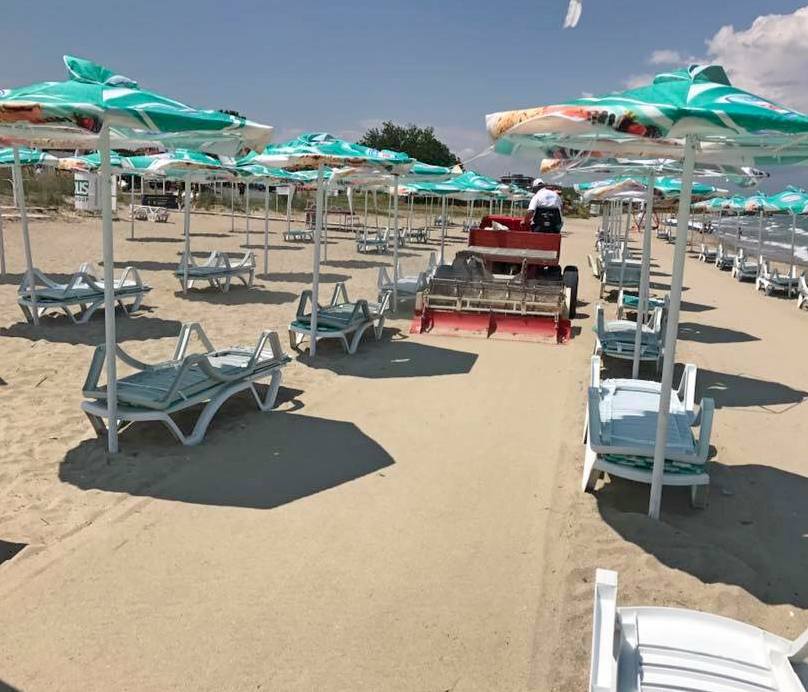 В момента на плажа тече трескава подготовка за старта на сезона – 1 юли. Машини са изчистили безупречно пясъка, чадърите, шезлонгите и шатрите вече са поставени, а плажните барове работят.