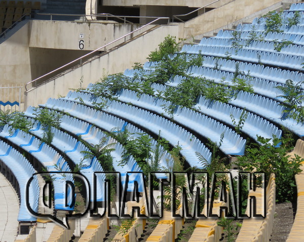 По трибуните е започнала да избива и буйна растителност, включително и дива лоза