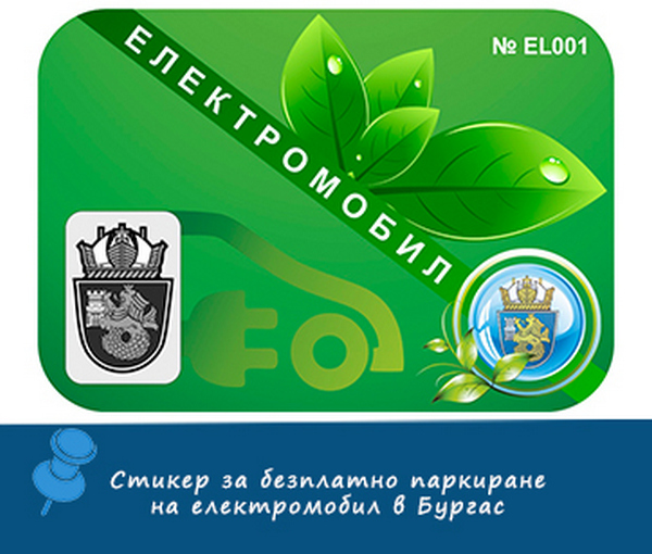Маркират електромобилите в Бургас със специален стикер за безплатно паркиране