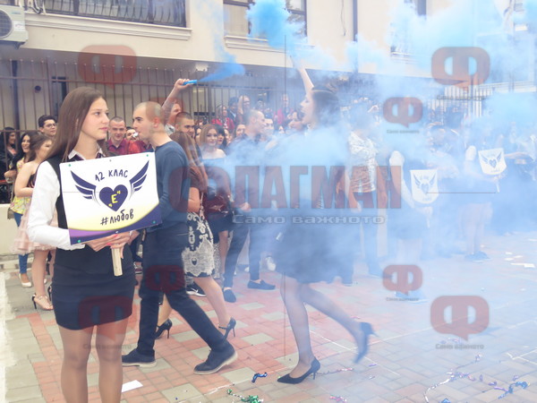 Тази година се оказа, че най-дъгокраките абитуриентки са ученички от Търговската гимназия в Бургас. Преди минути красaвиците прекрачиха училищния праг за последен път заедно с елегантни кавалери под ръка.