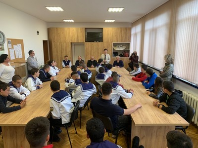 Поводът за посещението в Морското училище бе темата за употребата на алкохол и наркотици и настъпилите вследствие на това пътно-транспортни произшествия