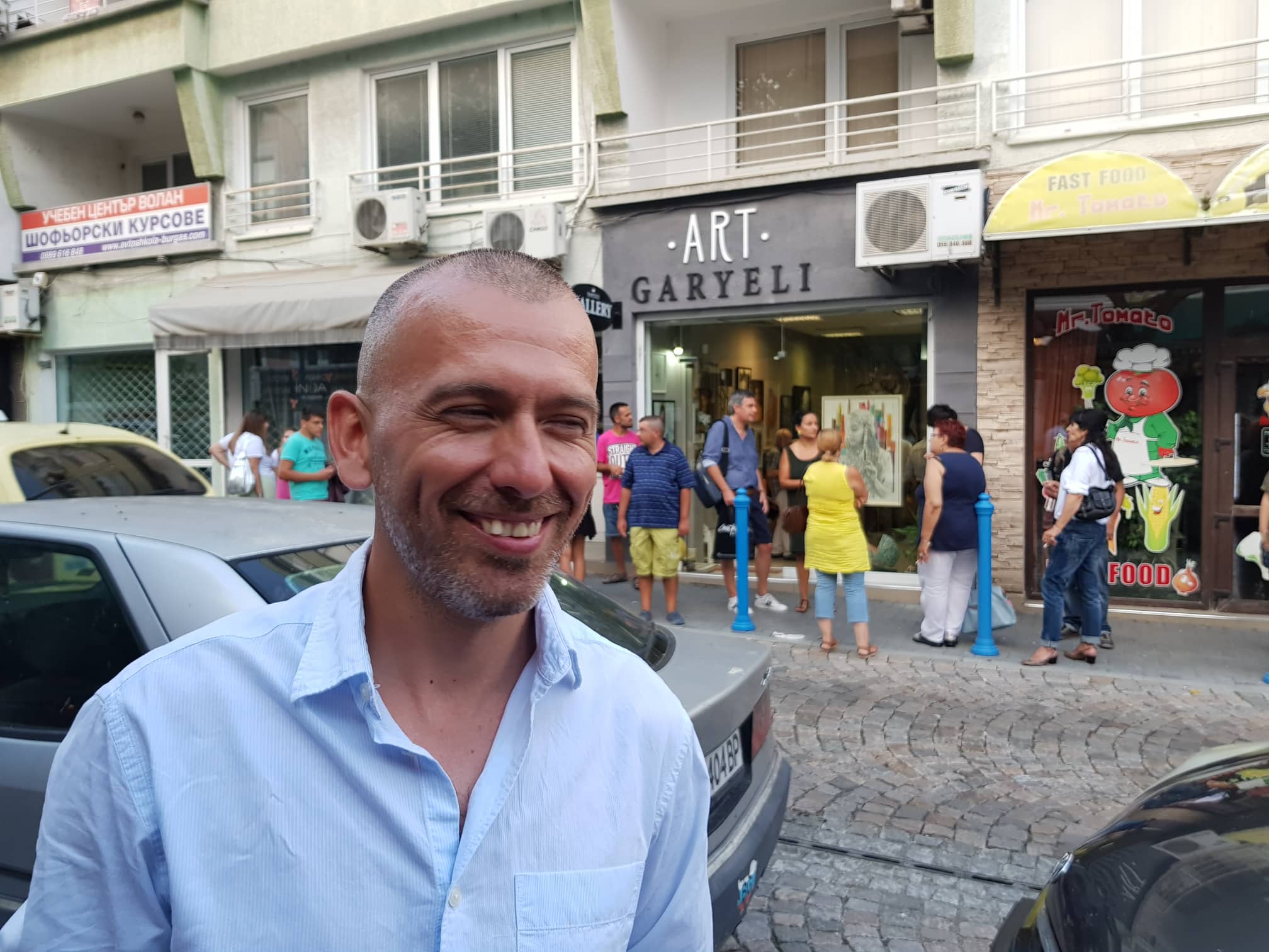 Срещаме се с Насимо пред галерията в центъра на Бургас.