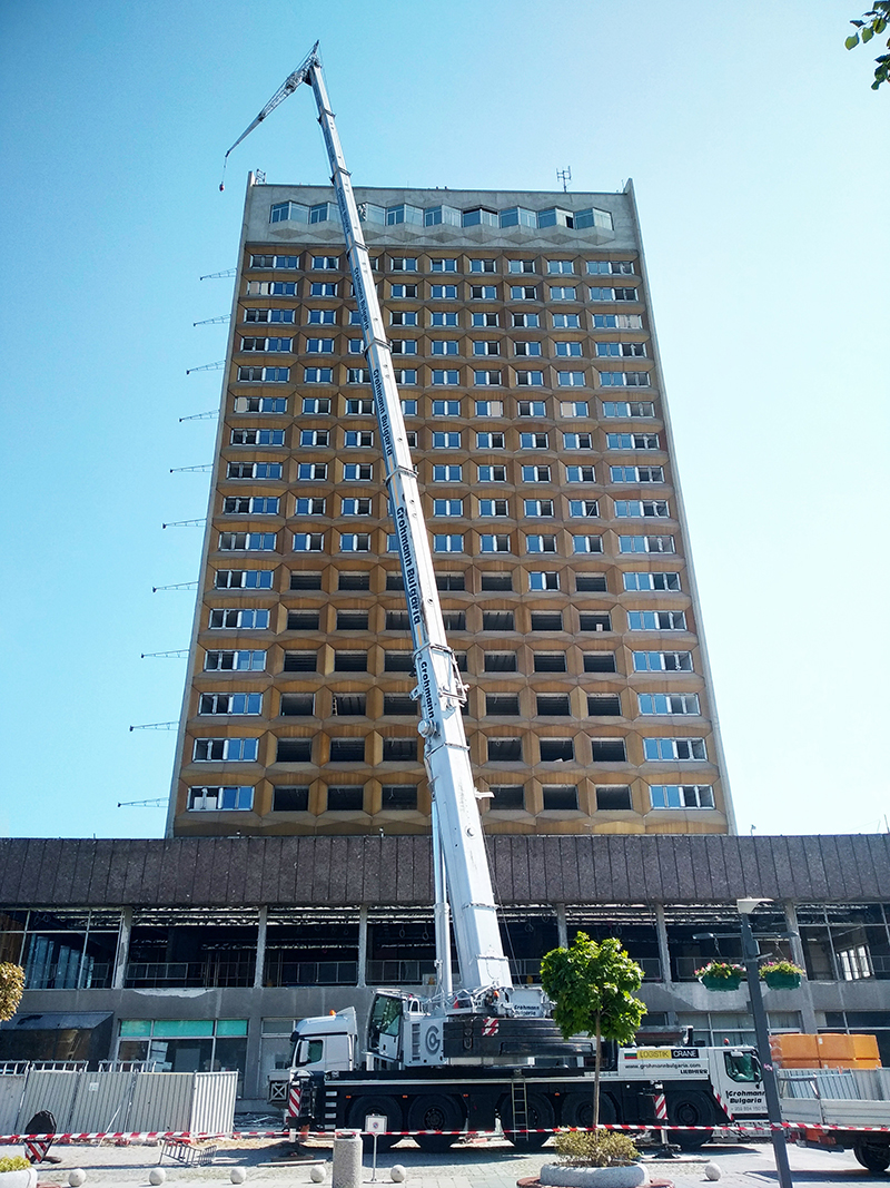 От няколко дни насам край ремонтиращия се от близо година хотел „България“ е изправена огромна вишка и много бургазлии са в неведение какво всъщност се случва. Всъщност се оказа, че в момента се извършва една от най-важните и трудоемки работи по проекта за пълното преобразяване на интериора на сградата – монтират се огромните външни климатични тела. Те са високи колкото човек и са изключително тежки, което прави вдигането им с друго освен вишка на практика невъзможно.
