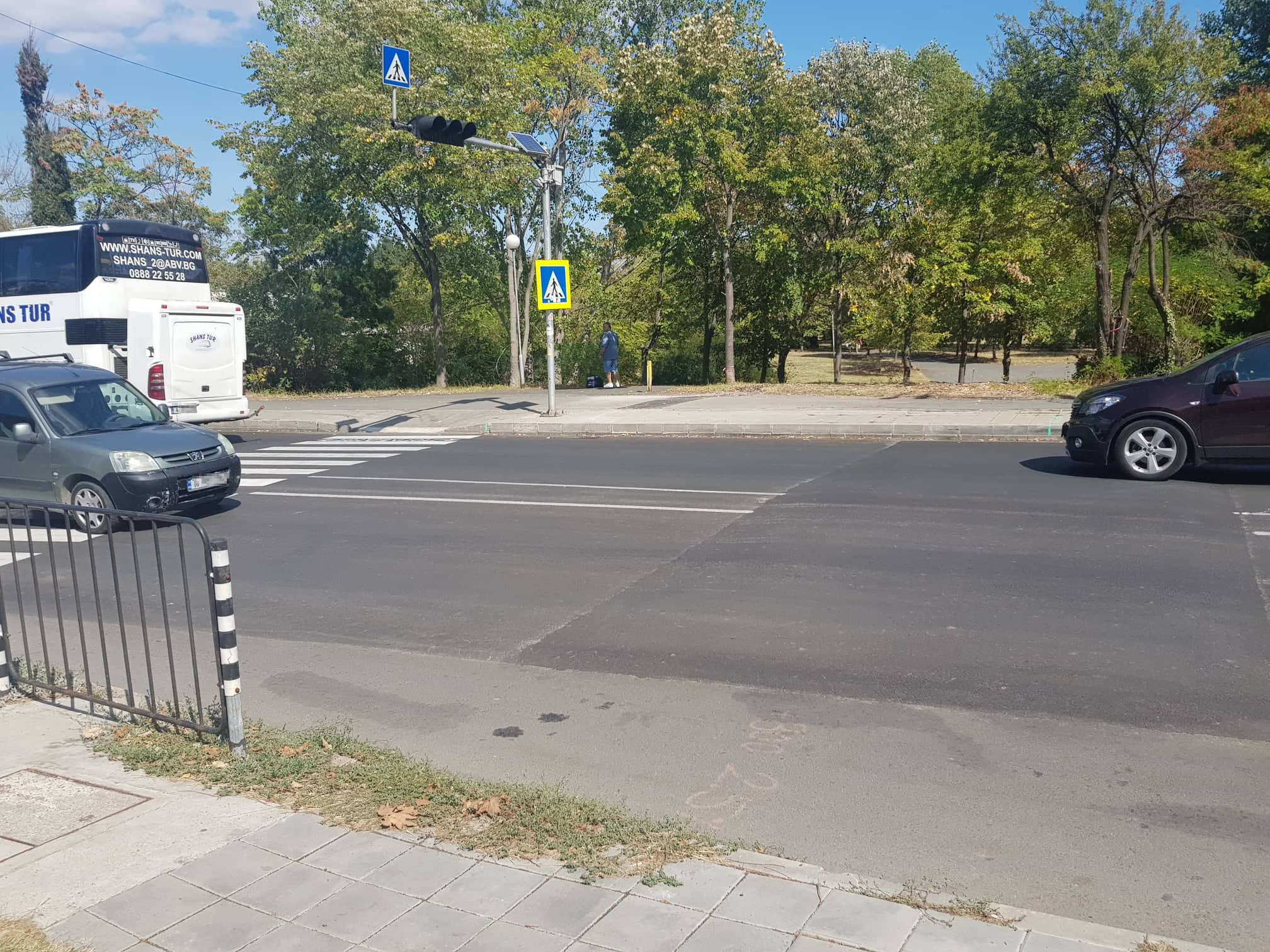 Буквално на 50 метра по-нагоре по ул. „Димитър Димов” в посока жк „Лазур” също има пешеходна пътека, която страда от същата недомислица.
