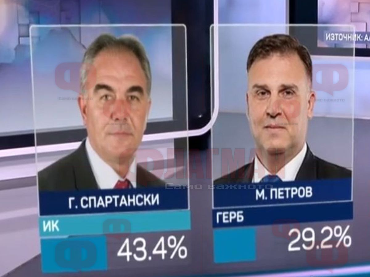 Кой ще стане кмет на Плевен ще решат избирателите на балотаж между действащия градоначалник Георг Спартански, който печели 43,4% подкрепа и Мирослав Петров от ГЕРБ. За кандидатът на управляващите са гласували 29,2% от избирателите в града. Това сочат първите данни на социолозите, съобщени от бТВ.
