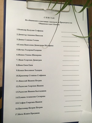 Издигнати бяха две кандидатури – на Радослав Балтаджиев от ГЕРБ и Николай Петров от СДС, който обаче си направи отвод. С 13 гласа бе избран досегашния председател Радослав Балтаджиев, който вече се е утвърдил като компетентен и отговорен човек, като човек, който може да обединява различията между общинските съветници и да потушава пламъците, които често възникват по време на сесии между тях.