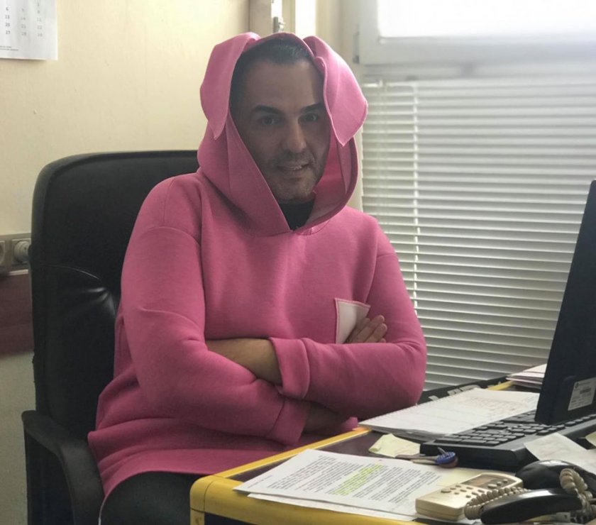 Тв водещият призна, че вече му е коледно и качи снимка от БНТ, като на кадъра е с като розово зайче.