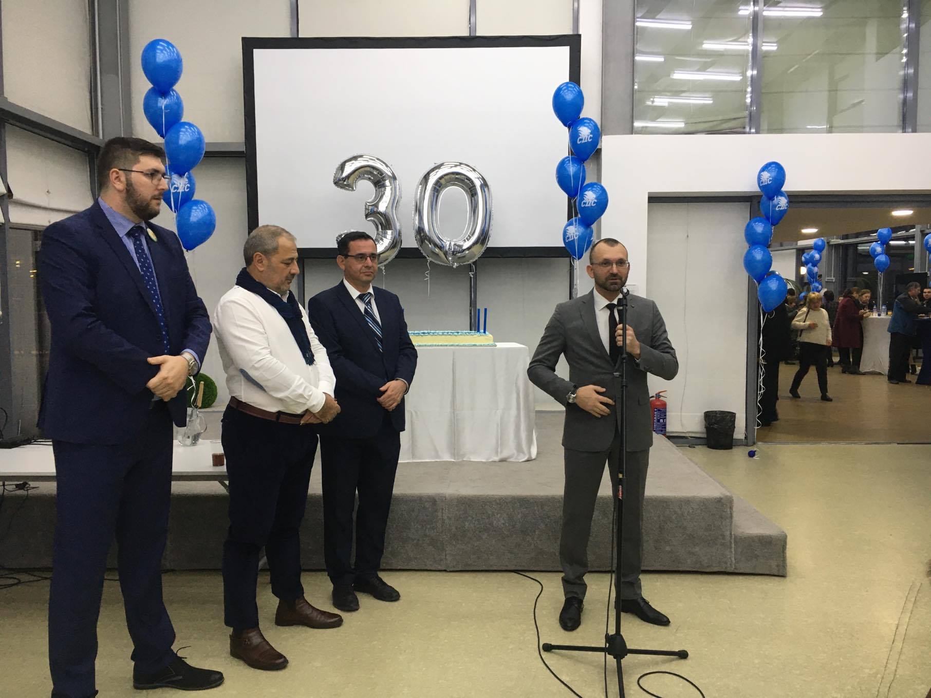 Голямата торта за 30-тата годишнина на партията бе разрязана от областния председател д-р Георги Митев, общинският председател Станимир Апостолов, членът на НИС на СДС и областният секретар на сините Тошко Иванов.