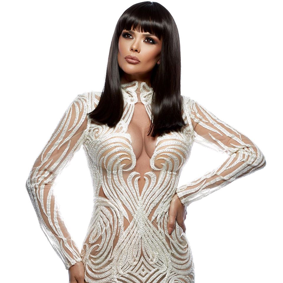Всичко това изглежда като мощен магнит върху който са поръсили бяло вещество. Не казвам какво, но то се е съсредоточило така симетрично, че може дори да заприлича на рокля. Харесвам странните форми, които бродерията е заела, без разбира се да приемам насериозно облеченото, което продължава да поражда в мен странни чувства. Предвид празниците, си мисля, че Преслава може да постави една шапка на Снежанка и да продължи напред в модните си стремежи. В моите очи обаче, тази дрешка повече се доближава до салата Снежанка, в която има много чесън и копър. Прическата е вълнуваща, с оценка 1970 година, когато социалистическата ножица подстригваше долу горе по подобен начин. Справка- Ваня Костова и Доника Венкова. Има нещо задушаващо в горната част на роклята- боди, там където се срещат гушата и дантелата. Все едно е фрагмент от нова серия на Ханибал Лекстър, само че е удушване с кадифени ръкавици. След тази текстилна болка слизаме по-надолу, за да установим огромна климатична или зодиакална дупка, в която се разкриват прелестите на две планети изгубени, както пеят звездите…