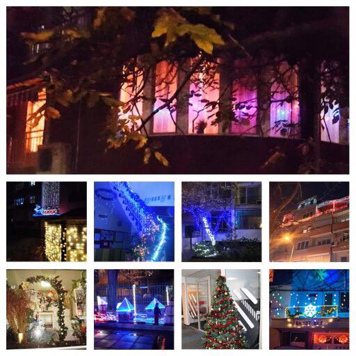 Специално отличие за заразителен коледен дух печелят 48 семейства от блок 107, вход Г в комплекс "Меден рудник", и блок 70, вход В от комплекс "Славейков". Поздравления за екипа на "Съдърланд" - Бургас, както и за чаровните репортерки от телевизия Канал 0, които ни усмихнаха с коледната си фотосесия. Красиво светещо дърво ще ви посрещне в предблоковото пространство на бл. 41 в к-с "Лазур". Изпрати ни го бургазлийката Донка Минкова.