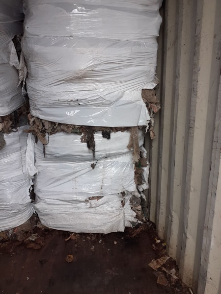 Откритият товар е деклариран като отпадък от пластмаса и каучук, но сред него е намерен и текстил, както и метал, стана ясно още на брифинга.
