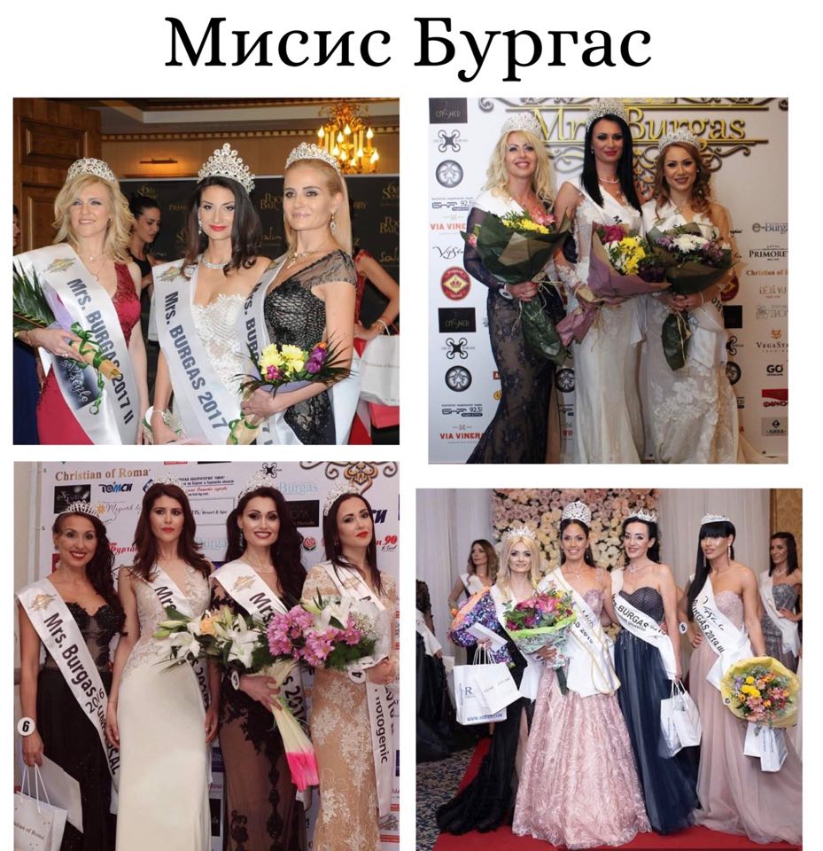 Мая Великова "Мисис Бургас 2016" и нейните подгласнички – Калина Калчева, Розалина Попова и "Мисис Бургас Юнивърсъл" Валя Жекова;