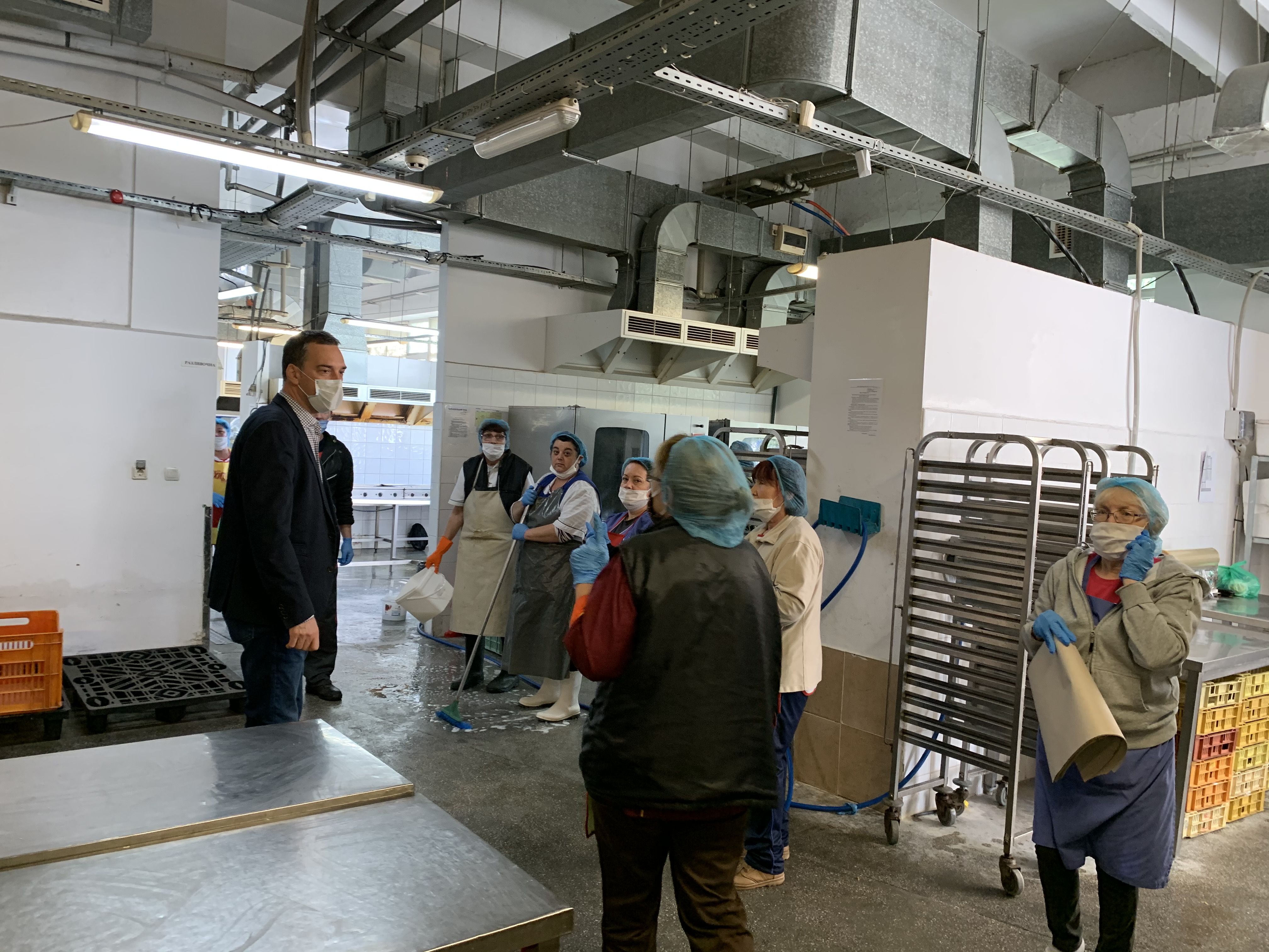 Кметът на Бургас Димитър Николов инспектира работата на пункта за приготвяне на храна за Детска млечна кухня, Домашен социален патронаж, за полицаите по КПП-та и потребителите на новата социална програма „Топъл обяд“, съобщават от Община Бургас.