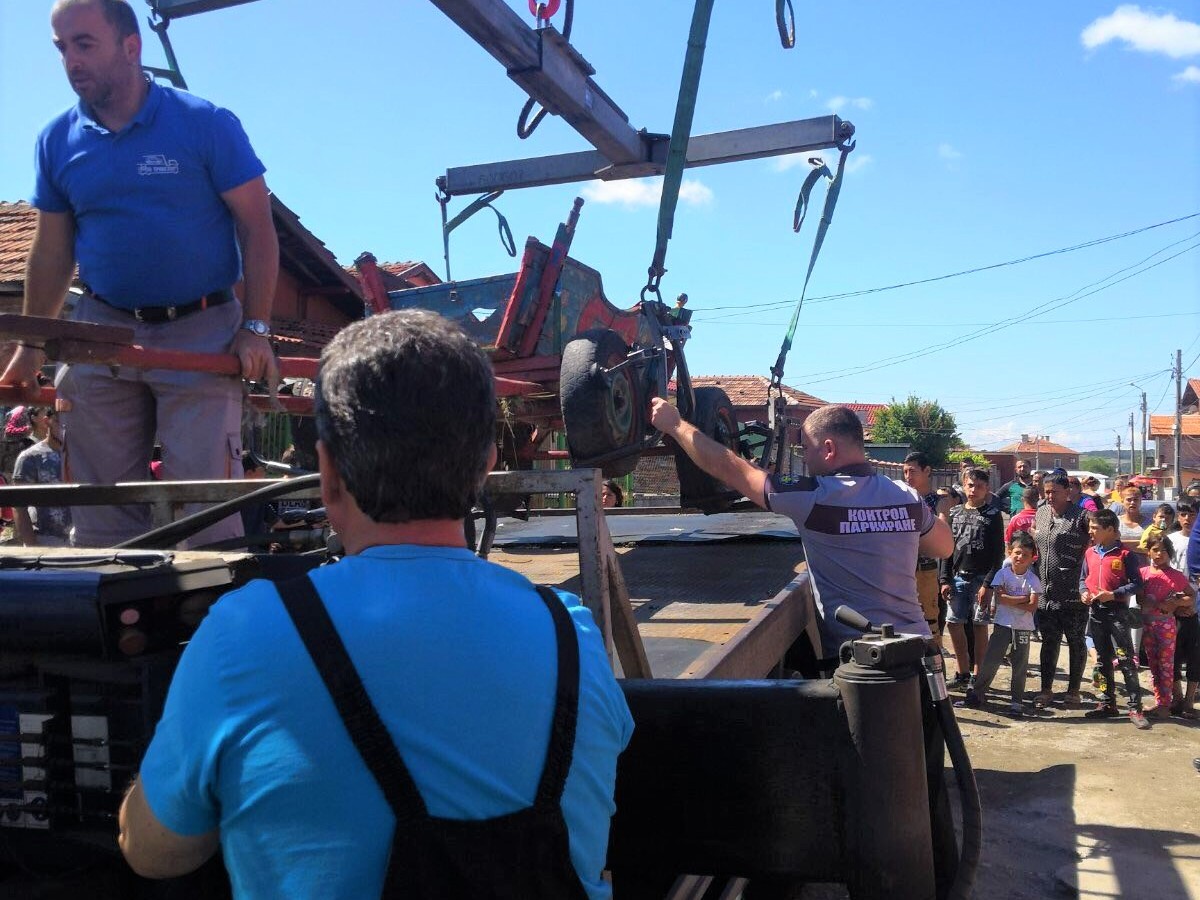 Община Бургас вдигна с паяка и "арестува" каруца на жител на квартал "Горно Езерово", която е установена да се движи по градски пътища, а това е абсолютно забранено. На собственика е написан акт. Той може да си получи обратно возилото, когато си плати глобата.