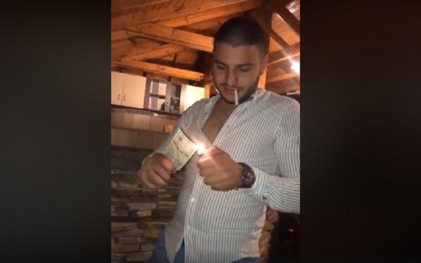 Млад и очевидно заможен ром си запали фаса с банкнота от 10 лева, пише Lupa.bg. Гаврата се вихри на фона на бясна чалга с трели, от които ти настръхва косата. Докато баровецът пали ценната хартийка, с която много пенсионери у нас си осигуряват седмичната прехрана, отстрани се чуват одобрителни възклицания. В много страни по света изгарянето на банкноти се смята за престъпление като поругаване на национален символ. В САЩ, например, този акт можеше да коства на невръстния простак затвор до 10 години.