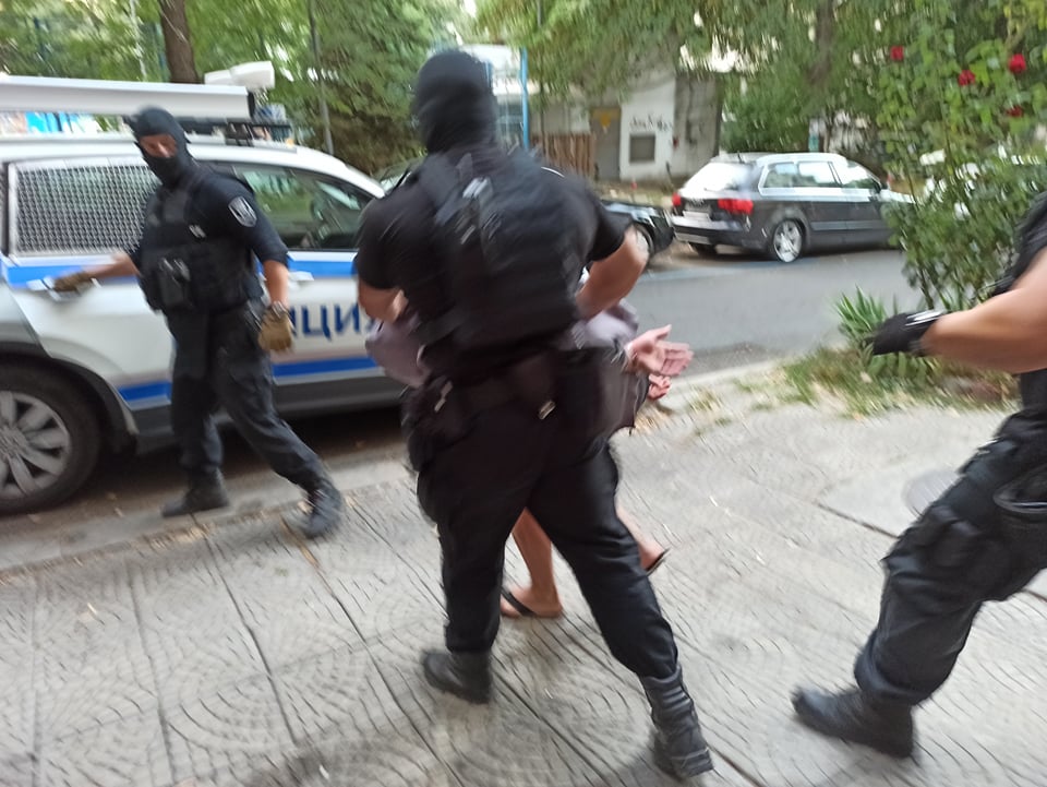 Мъж на около 40 години бе изведен току-що от претърсвания близо 2 часа адрес до Борисовата градинка в Бургас. Заедно с него униформените изведоха и няколко тийнейджъри. По информация на свидетели арестуваният е подпалвач, който е обвинен за извършен палеж в Поморие.