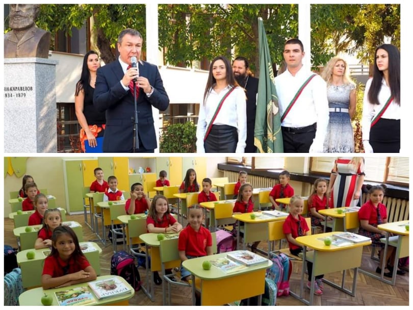 По традиция градоначалникът Николай Димитров откри учебната година в най-голямото и от миналата година иновативно училище СУ„Любен Каравелов“. Тази година, поради обстоятелствата и мерките срещу COVID-19, в училищния двор присъстваха само ученици от първи, пети и осми клас, за които предстои нов етап в обучението.