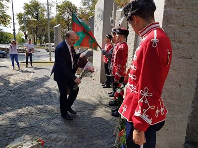 Венци и цветя в памет на загиналите войници от полка пред Професионалната гимназия по транспорт поставиха на паметника областният управител Вълчо Чолаков, зам.-кметът по култура, туризъм и спорт Диана Саватева и почетният консул на Русия Тонко Фотев.