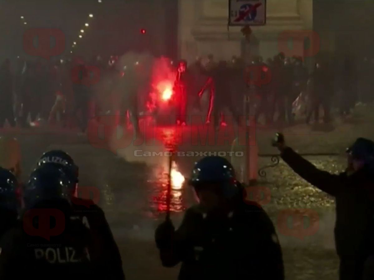 След 4 дни мирни протести в цяла Италия, около 140 души се събраха в центъра на столицата. Те скандираха "Свобода" и запалиха цветни факли. Малко по-късно започнаха да хвърлят бутилки и запалителни бомби по силите за борба с безредиците.