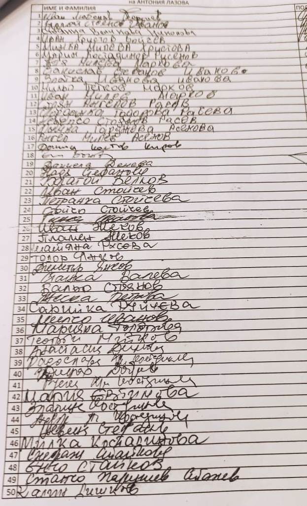 Или са писани от един човек, който е писал с няколко различни подписа или са писани от 3-4 човека като всеки е правил по няколко различни варианта на почерк. Трябва да сте слепи да не го видите. Подписите не се виждат, но може и те да са фалшифицирани. Остава единствено хората да прочетат имената и ако случайно не са се подписвали да вдигат патърдия да им се посмеем малко на тия с подписката. А иначе явно не е трябвало да показвате имената на хората