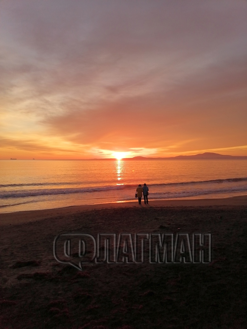 Първите слънчеви лъчи в Бургас се показаха в 07:40 ч. и десетки бургазлии бяха изпълнили плажа, за да посрещнат деня. Най-смелите от тях дори плуваха в морето.