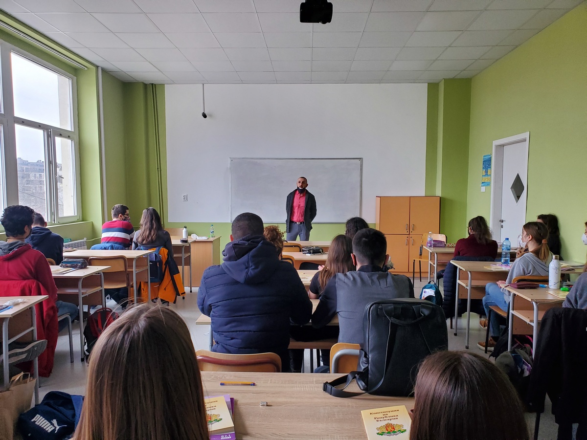 Съдия Бобоков говори за видовете наркотични вещества, наказанията, които следва да понесат подсъдимите по този вид престъпления. Младите хора с любопитство дискутираха със съдията с какви методи в съда се установява количеството на наркотичните вещества, по какъв начин едно дело се образува и влиза за разглеждане в съда.
