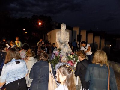 Часове преди официалното откриване в храм „Свето Рождество Богородично” беше прочетена заупокойна молитва за душата на поетичния гений