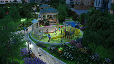 - Зони за почивка и забавление за деца – Разнообразно и интересно оборудвана детска площадка с пързалки, люлки, пясъчник за деца и др. , които също така са със специално покритие от плочки с гумени трохи за осигуряване на високо ниво на безопасност за деца. До детската площадка е разположена ротонда-беседка за почивка и комфортно общуване за родители, които едновременно могат да наблюдават своите деца.