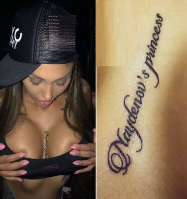 Докато беше влюбена в него, 30-годишната Гани започна да си шари различни неща, посветени на инструктора от Монтана. Тя имаше две основни татуировки, посветени на съпруга си - едната между гърдите й гласеше „Принцесата на Найденов“, а другата на гърба била доста масивна.