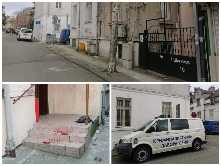 Двамата преди няколко месеца са наели етажа от къщата на улица Георги Шагунов 19. В момента в жилището тече оглед, а пресните следи от кръв на прага подсказват за ужаса.
