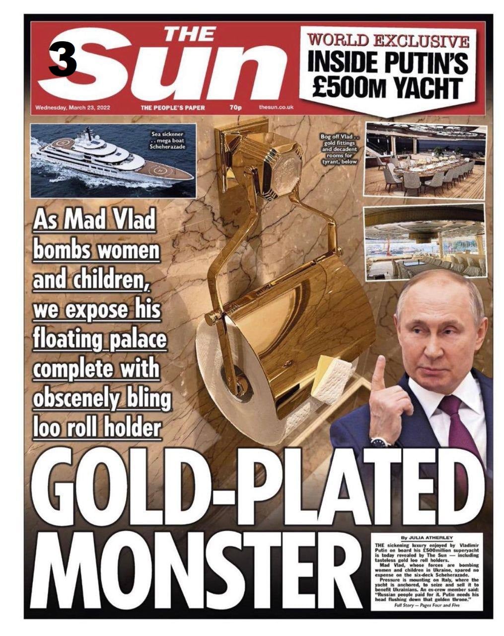 - британският вестник „Сън“ публикува репортаж от арестуваната яхта на Путин. Там всичко е от злато, дори поставката за тоалетна хартия (снимка 3);