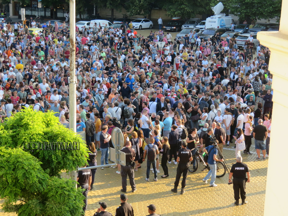 Чуват се скандирания „Мафията вън“. Още в началото на митинга бе забелязан Атанас Атанасов от "Демократична България". Заседанието на парламента продължава и към този час. Обсъжда се актуализацията на бюджета на първо четене.