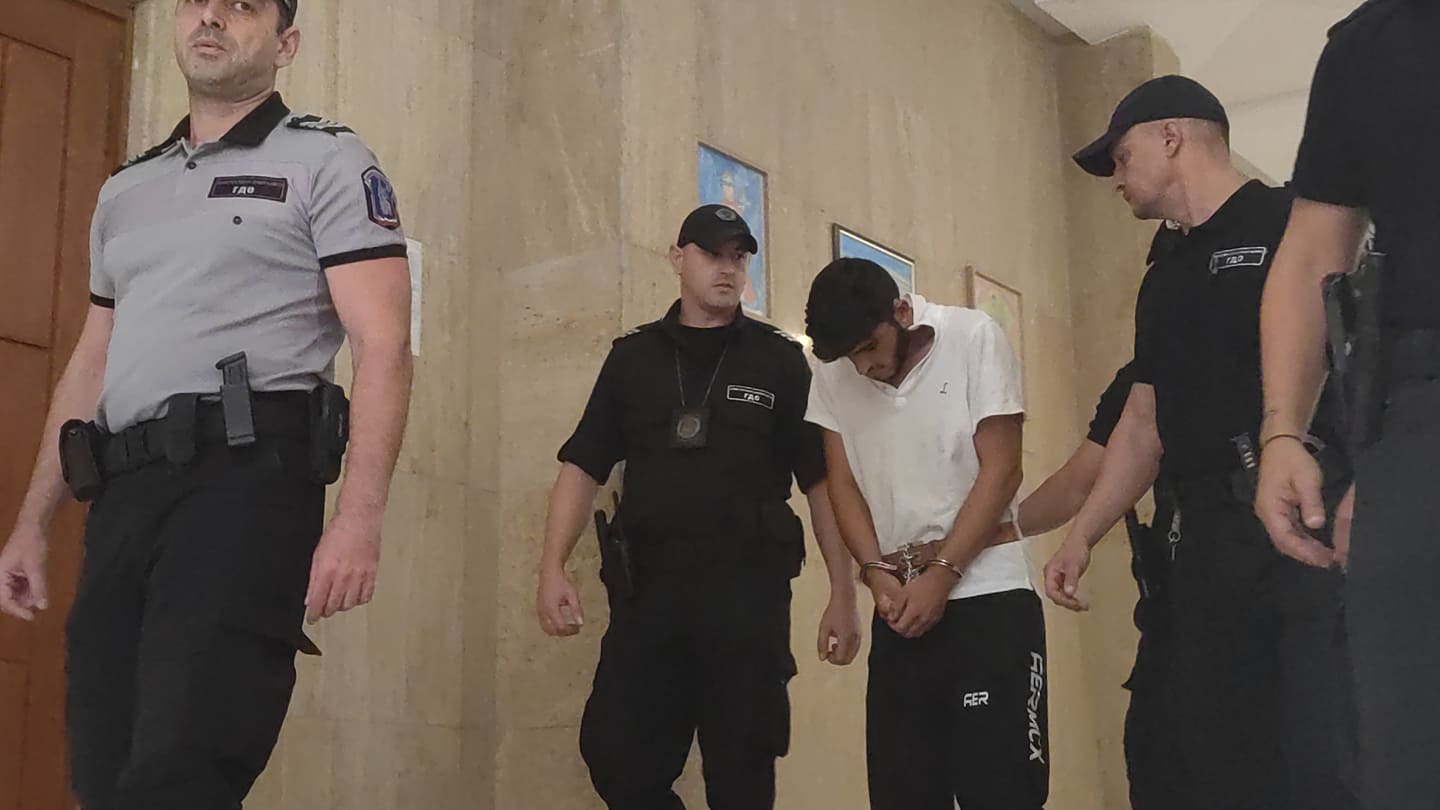 Сириецът Омар, който премаза с автобус двама български полицаи, току-що бе конвоиран до зала на Окръжния съд в Бургас, където след минути ще се гледа мярката му за неотклонение.