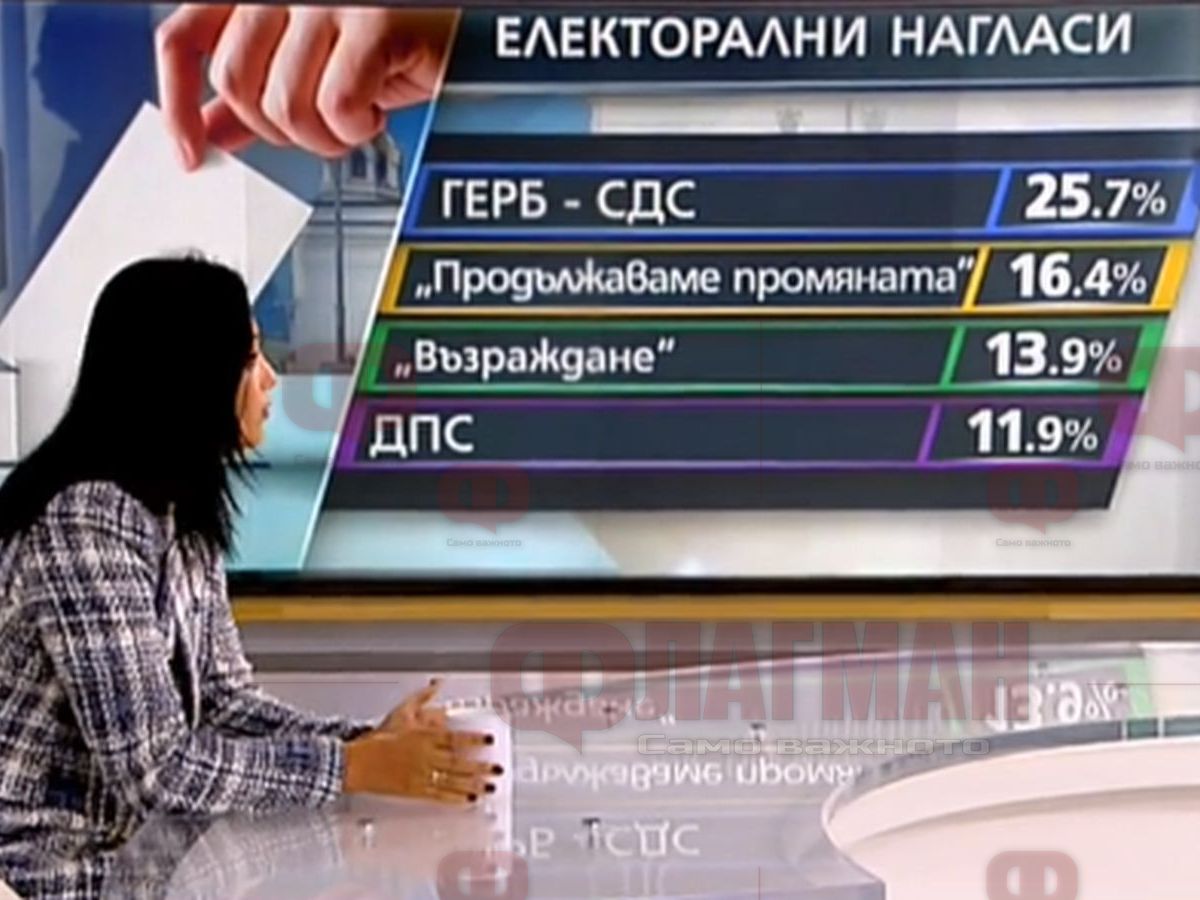 ГЕРБ на 9,3 процента пред "Продължаваме промяната"