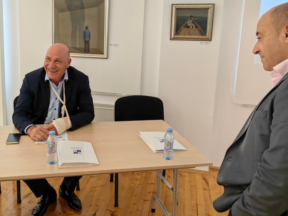 Кметът на Поморие Иван Алексиев е със счупена лява ръка и от два дни ходи на работа гипсиран, видя репортер на Флагман.бг.