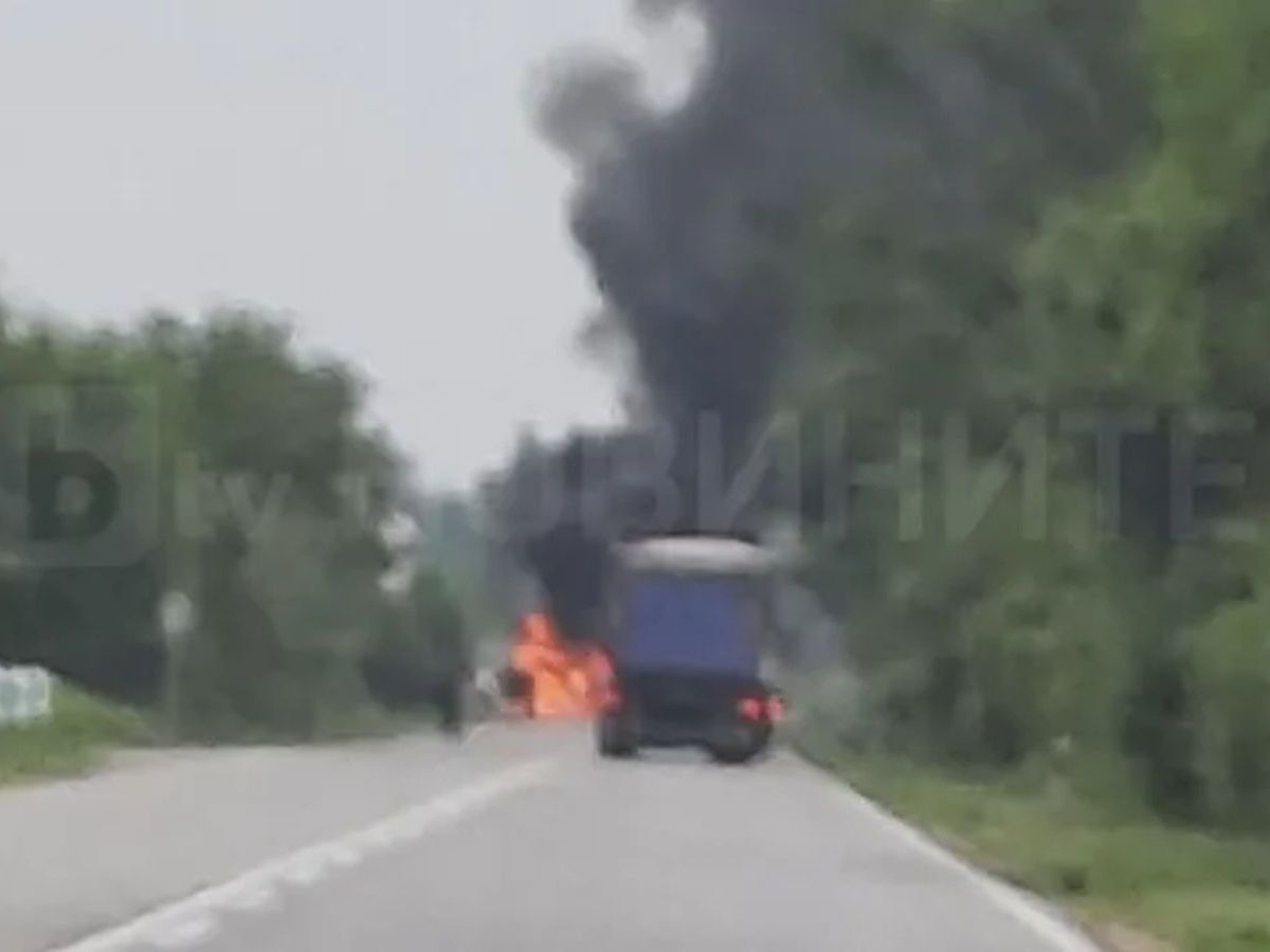 По първоначална информация лек автомобил се е ударил в спрял тежкотоварен камион, като при удара колата се е запалила. Има опасност да се запали и камионът, затова пожарната е отцепила периметъра.