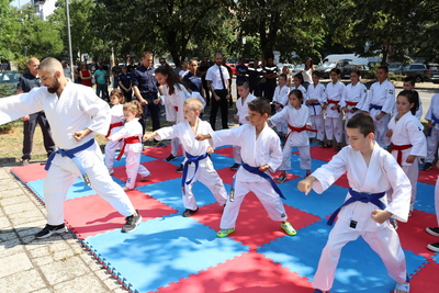Отбелязването на 144 години от създаването на МВР продължи с демонстрациите на състезателите от Централния полицейски карате и джу джицу клуб. Малчуганите показаха завидни бойни умения и нагледно осъществиха задържане с престъпник.
