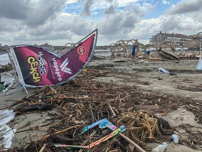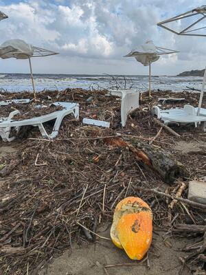 Голяма част от чадърите и шезлонгите за напълно унищожени. Пострадала е и част от инвентара на бийч баровете. Повечето от тях се готвят реално да приключат сезона.