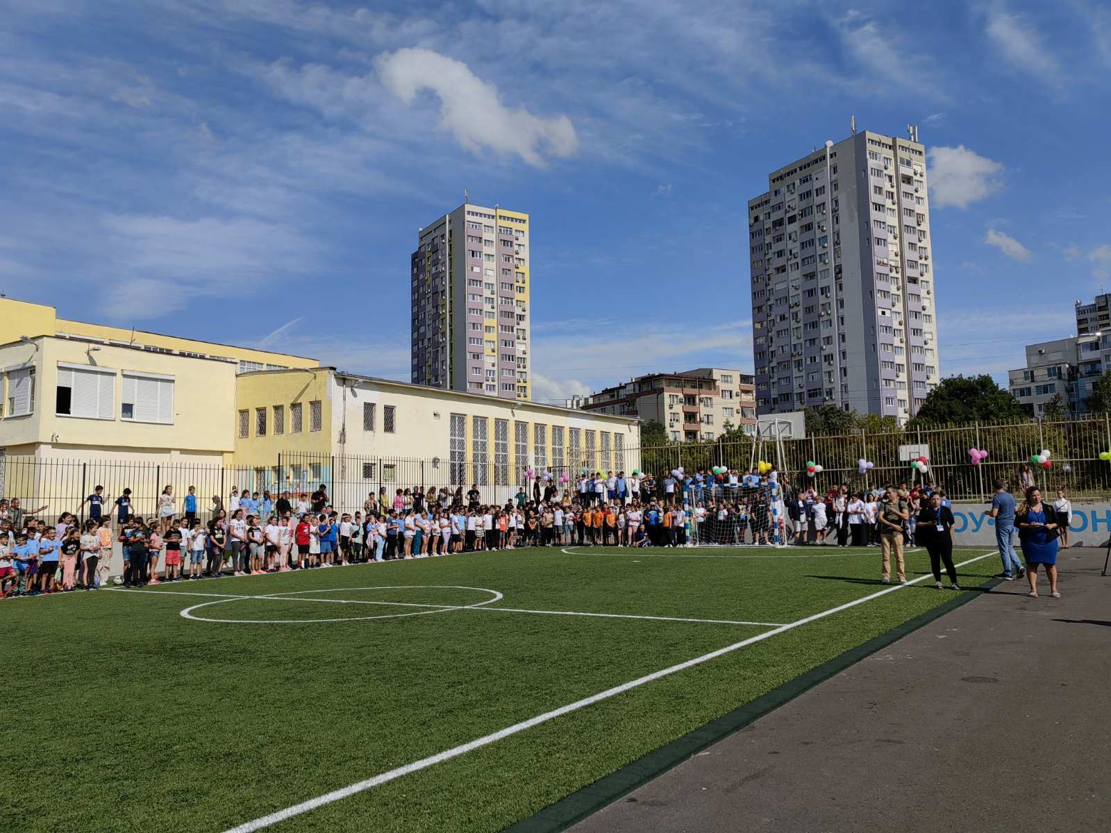 Обновеният физкултурен салон преди година и новите спортни съоръжения ще осигурят качествени и съвременни условия, които ще бъдат използвани от над 900 ученици за провеждане на занимания на открито в часовете по спорт и в свободното си време.