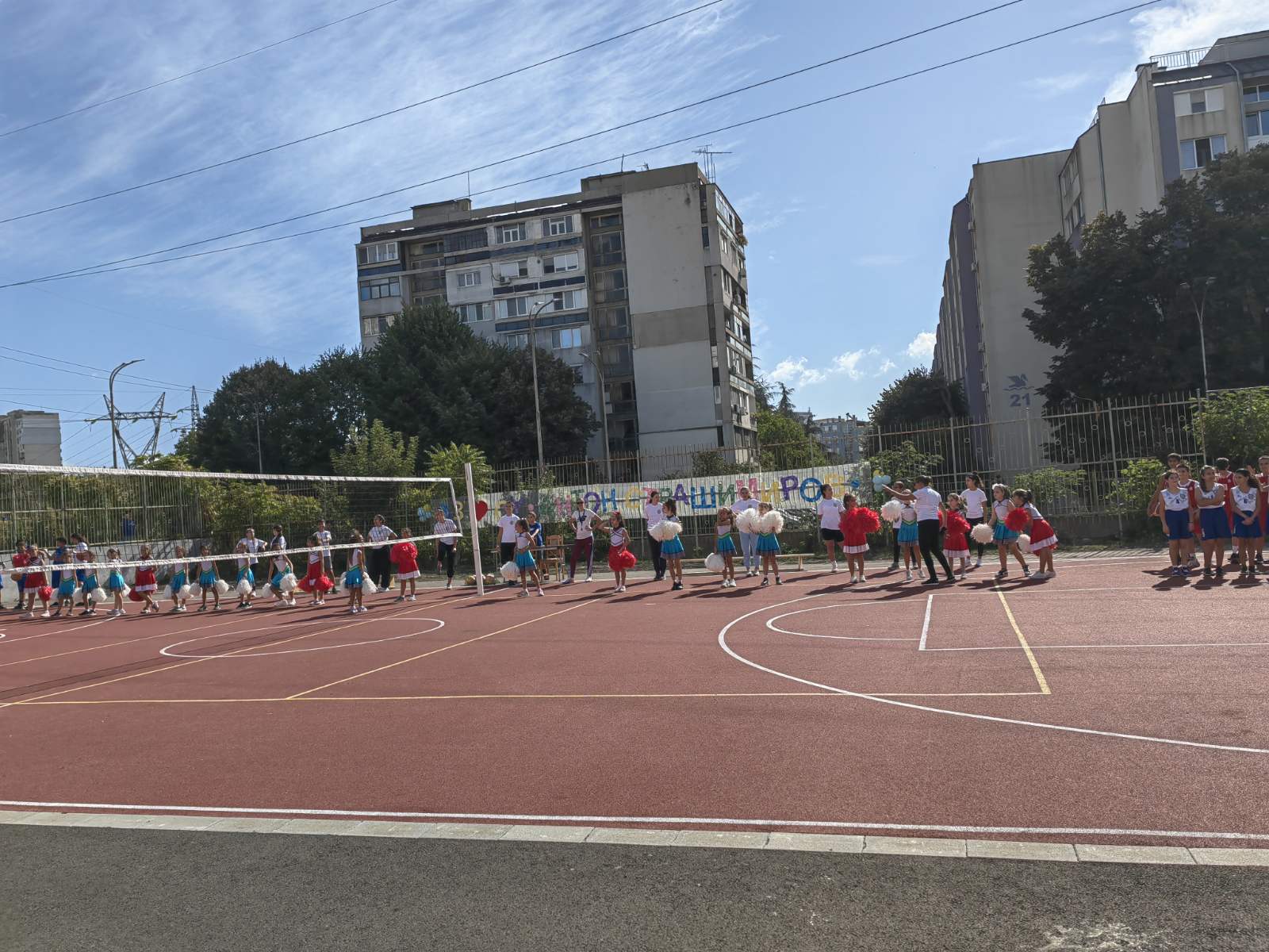 Над 300 ученици от учебното заведение изпробваха възможностите на новите игрища, като се включиха в демонстрационни мачове по футбол и баскетбол. Децата направиха и волейболна тренировка с професионалистите от ВК „Дея Спорт“ и ВК „Нефтохимик 2010“.