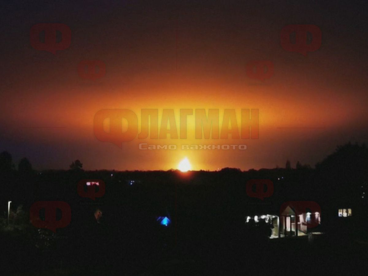 На кадрите се вижда огромно огнено кълбо, което се издига на десетки метри в небето. Преди това се е чул мощен взрив