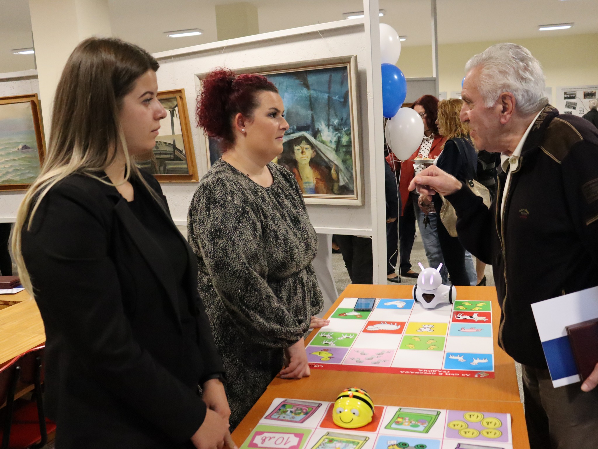 гостите сякаш попаднаха в машина на времето. На входа му ги посрещна стара черна дъска и дървен чин от миналия век, а в другия край студенти им подаваха очила за виртуална и добавена реалност и им показваха модерни движещи се мини роботи. Младите разпалено обясняваха как децата ги програмират и учат с тях. Възрастните разказваха какво е било едно време.
