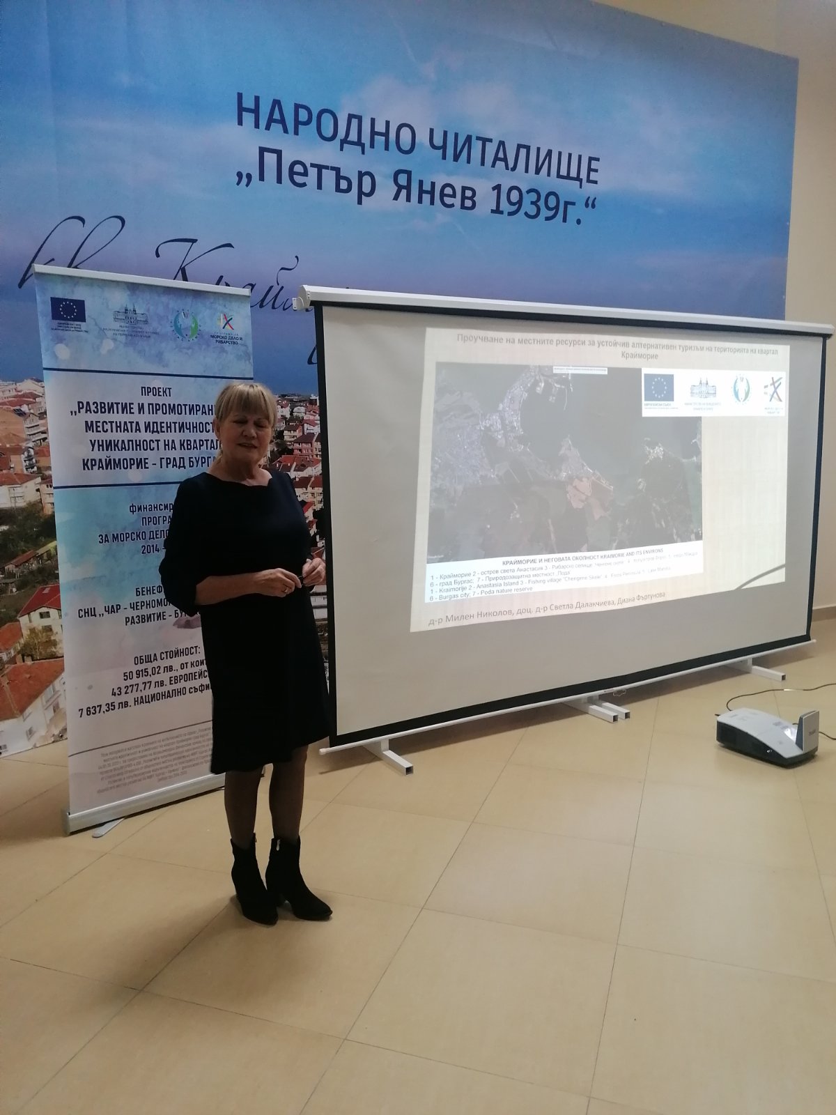 Презентациите бяха представени от Д-р Светла Далакчиева-главен уредник на Природо-научния музей в Бургас , еколог и член на Работната група, формирана в рамките на проекта за създаване на постоянна Рекламна експозиция “Богатствата на Крайморие“и Красимира Ятакчиева-управител на СНЦ“ЧАР-Черноморска асоциация за развитие –Бургас“