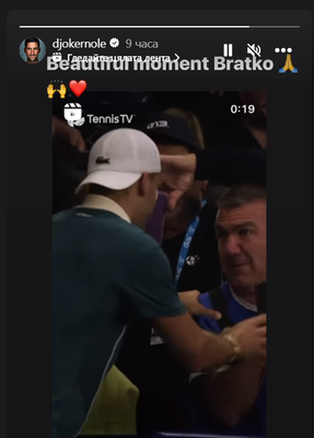 Новак Джокович поздрави най-добрия тенисист на България Григор Димитров с публикация в социалните мрежи. 24-кратният носител на титли от Големия шлем сподели видео в Инстаграм и написа „Красив момент, братко“. Клипът е от мача на българина със Себастиан Корда, минути след победата му.