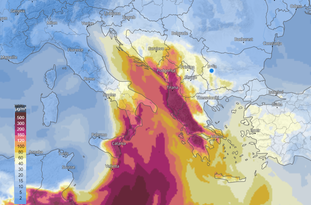 Причината за високите нива на сахарски прах е силен средиземноморски циклон, позициониран над Италия. Той засмуква огромно количество сахарски прах в атмосферата, а околните ветрове, съпътстващи циклона, го разнасят към Балканите и Източна Европа.