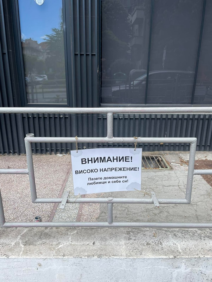 Само преди няколко дни на същото място бе поставена друга табела - "Внимание! Високо напрежение", която шокира минувачите.